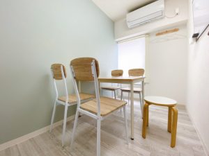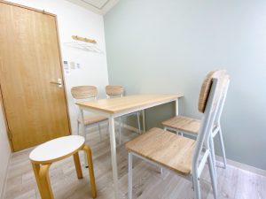 - 講師用の丸椅子を1脚ご用意しておりますので、セミナーや教室利用の際は4名(講師1名、受講生3名)までご入室いただけます。